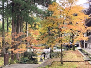 ![]() ![]() ![]() ![]() ![]() ![]() ![]() ![]() 飛騨高山・永平寺・一乗谷朝倉氏遺跡の写真です。(上手く編集できなくてすいません) 飛騨高山 11月13日、14日と飛騨高山に紅葉を見に行きました。コロナ禍でずっと旅行に行けなくて久しぶりです。飛騨高山(上2枚の写真)に向かう途中で、標識の上に乗鞍岳が写っています。市内の古い町並みは観光客でいっぱいでした。35年ぶりの高山です。名古屋で勤務している時に3か月に1回代理店を訪問していました。駅周辺はまったくわからないほど様変わりしていました。飛騨の中心地らしく、また観光客も多くにぎわっていました。 曹洞宗大本山 永平寺(写真中3枚) 14日に来た道を戻るより、福井へ抜ける中部縦貫自動車道があるみたいなので、九頭竜湖の湖畔を通ってお正月に有名は「永平寺」に向かいました。途中、所どころ紅葉で山がきれいでした。また遠くに見える高い山には雪が被っていてきれいでした。永平寺は、お堂に入って中の階段、廊下を上がり一番上の「法堂」まで行きます。途中の庭の木々も紅葉できれいでした。お正月のNHKで12時になると「ご~ん」という鐘の音の後に映る、寒々しい永平寺をイメージしていたので、こういうお寺もあるのだと驚きました。冬は寒いし、雪も多そうだから修行僧は助かるかも、なんて考えていました。 一乗谷朝倉氏遺跡(写真下3枚) 永平寺からそんなに遠くなさそうだったので、前に「ブラタモリ」で見た一乗谷に行きました。山城の写真と街並です。昔の住居跡が再現されており、朝倉氏の城下町のすごさ、トイレなど整備されたまちづくりが想像できます。昔は北陸の小京都と呼ばれるほど隆盛を誇ったそうです。織田信長に滅ぼされるまで100年ほど続いたそうです。 ソフトバンクのコマーシャルで6~7つのシリーズものがあった「一乗谷」です。 車で600キロほど走ったので、少し疲れましたが、楽しかったです。